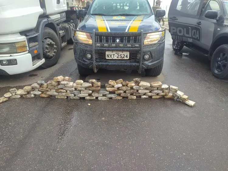A Polícia Rodoviária Federal realizou a abordagem ao caminhão tipo Scania, no sábado, 23, e solicitaram o apoio do cão farejador da Polícia Militar. Uma equipe da Companhia de policiamento com cães (Cpcães) foi ao local, e a cadela Safira sinalizou a presença dos entorpecentes no eixo do veículo. Os compartimentos do caminhão foram desmontados no domingo, 24, e foram encontrados 58 quilos de entorpecentes, aparentemente pasta a base de cocaína.