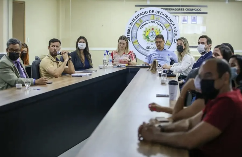 Andréa Brito, o procurador de Justiça Sammy Barbosa, e a defensora Juliana Coabianco. A secretária adjunta da Sejusp, delegada Márdhia Pereira, e representantes das polícias Militar e Civil também tiveram participações efetivas no encontro.