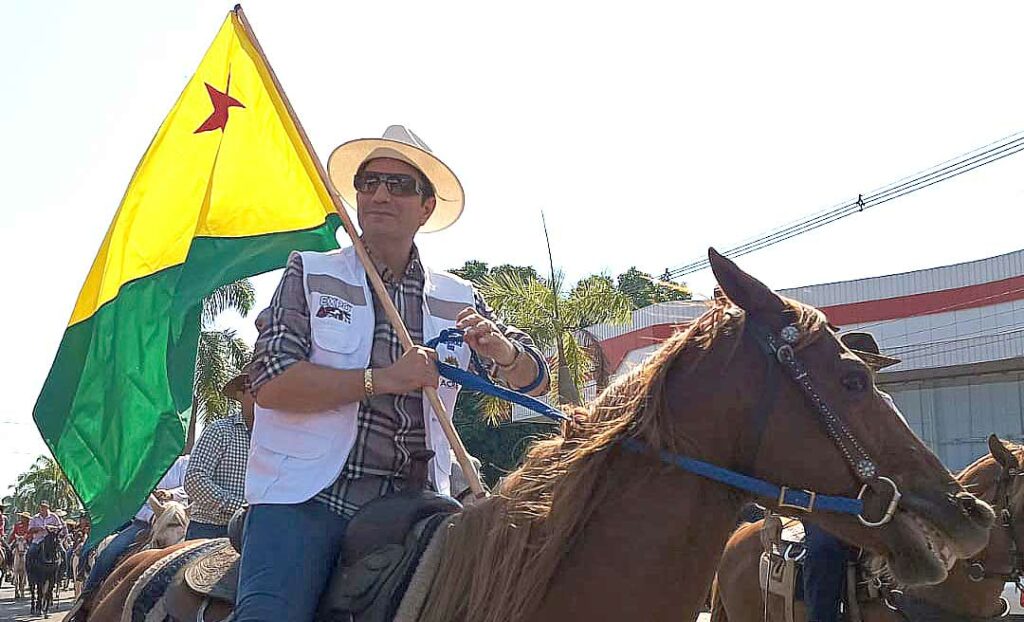 O governador Gladson Cameli acabado chegar no Calçadão da Gameleira para o início da cavalgada.