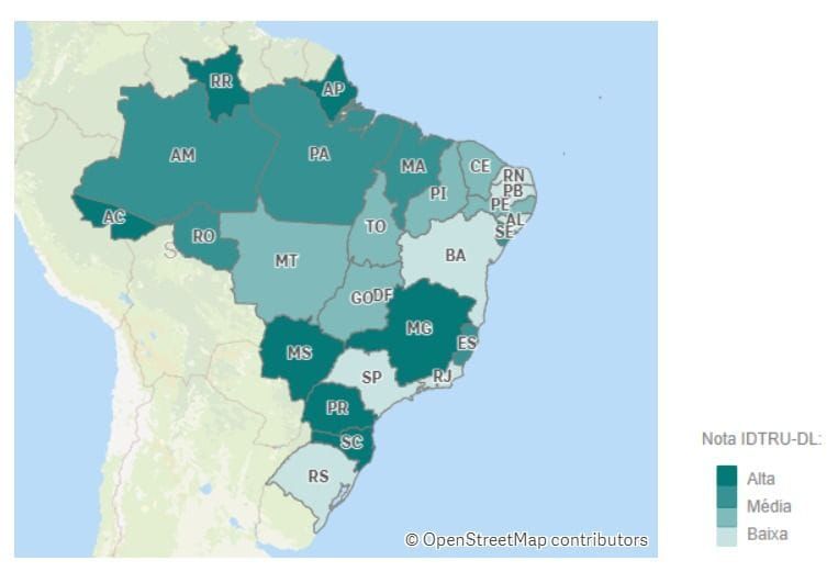 Ainda na Região Norte, na segunda colocação aparece Roraima, com 72,75 pontos, seguido pelo Amapá, com 71,63 pontos.