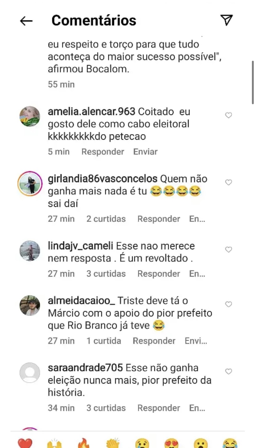 não economizar na defesa do filho, fez mais um comentário que gerou repercussão. Ao comentar nesta terça-feira, 9, no Instagram do ac24horas a matéria onde o prefeito Tião Bocalom declarou
