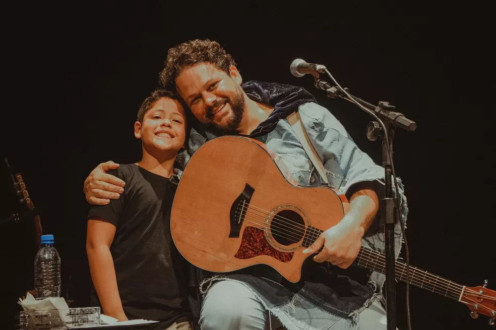 Ele estava com a mãe em São Paulo, onde a irmã mora, quando foi ao show do ídolo em São Bernardo do Campo. Na plateia, ele conta que já tinha jogado um avião de papel pedindo para tirar uma foto com Marcos Almeida, que é um cantor evangélico.