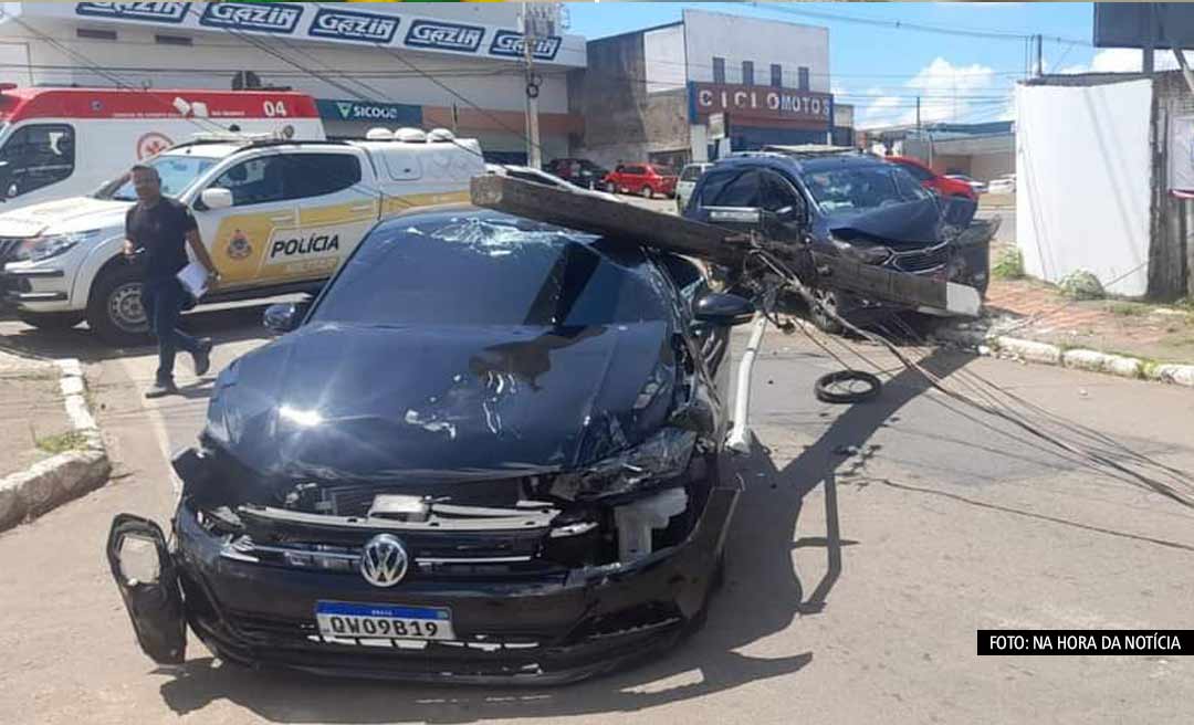 O táxi ainda bateu em um poste que caiu em cima do carro conduzido por Roberto Neto, que estava só.