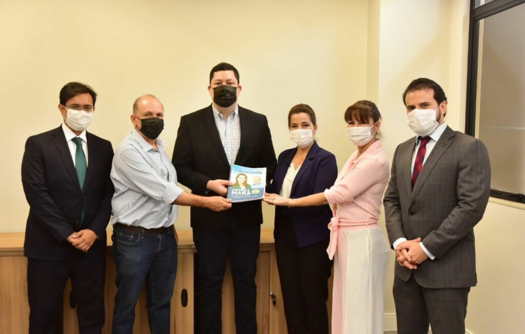 Mara chegou ao TRE e protocolou a entrega do Plano de Governo acompanhada dos presidentes de partidos e de alguns candidatos a deputados estaduais e federais.