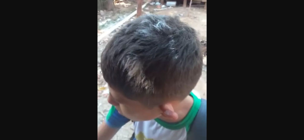 “O Kayo acabou de chegar da escola. Olha a situação que ele tá. A cabeça cheia de corretor [corretivo]. Quem foi que fez isso, Kayo?”, pergunta a mãe no vídeo. A criança responde que ‘foi o pessoal da minha sala’.