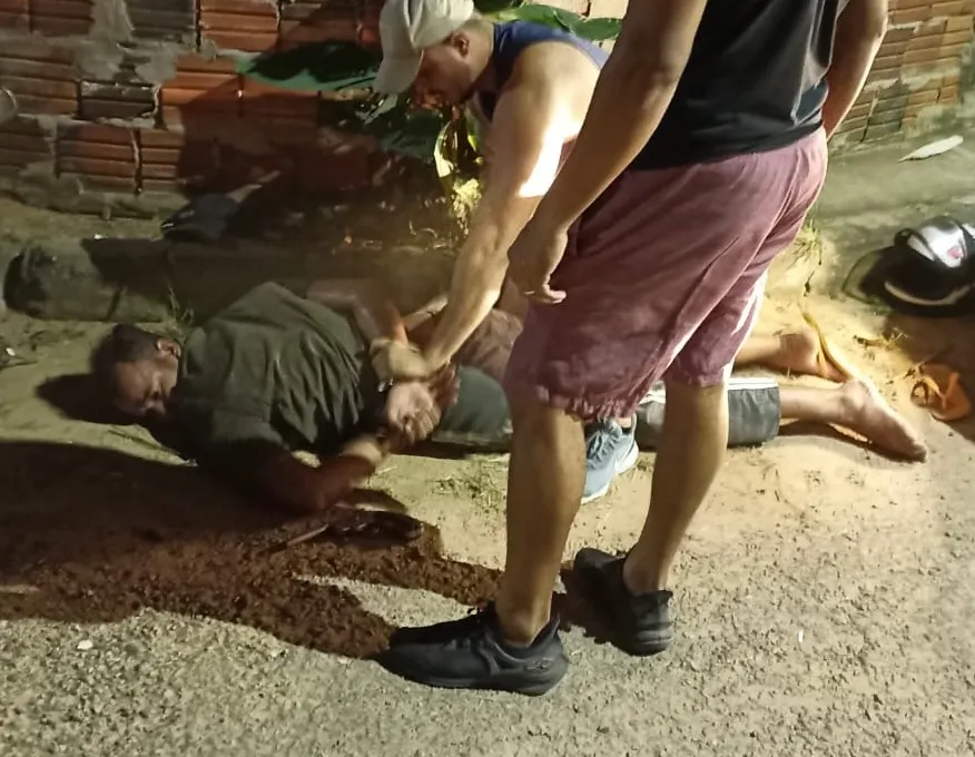 Na noite de ontem, enquanto a equipe de investigação da DCORE e DHPP faziam diligências para capturar o alvo, este cometeu outro crime e passou correndo na frente da equipe e, de imediato, foi realizado perseguição e abordagem do mesmo e prendendo-o em flagrante por delito por roubo qualificado, além de dar cumprimento ao mandado por roubo.