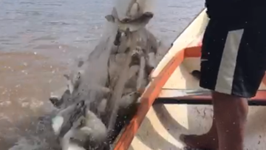 O vídeo foi divulgado por pescadores de Porto Walter (AC), e mostrou o exato momento em que o pescador puxa a rede e centenas de peixes são fisgados.