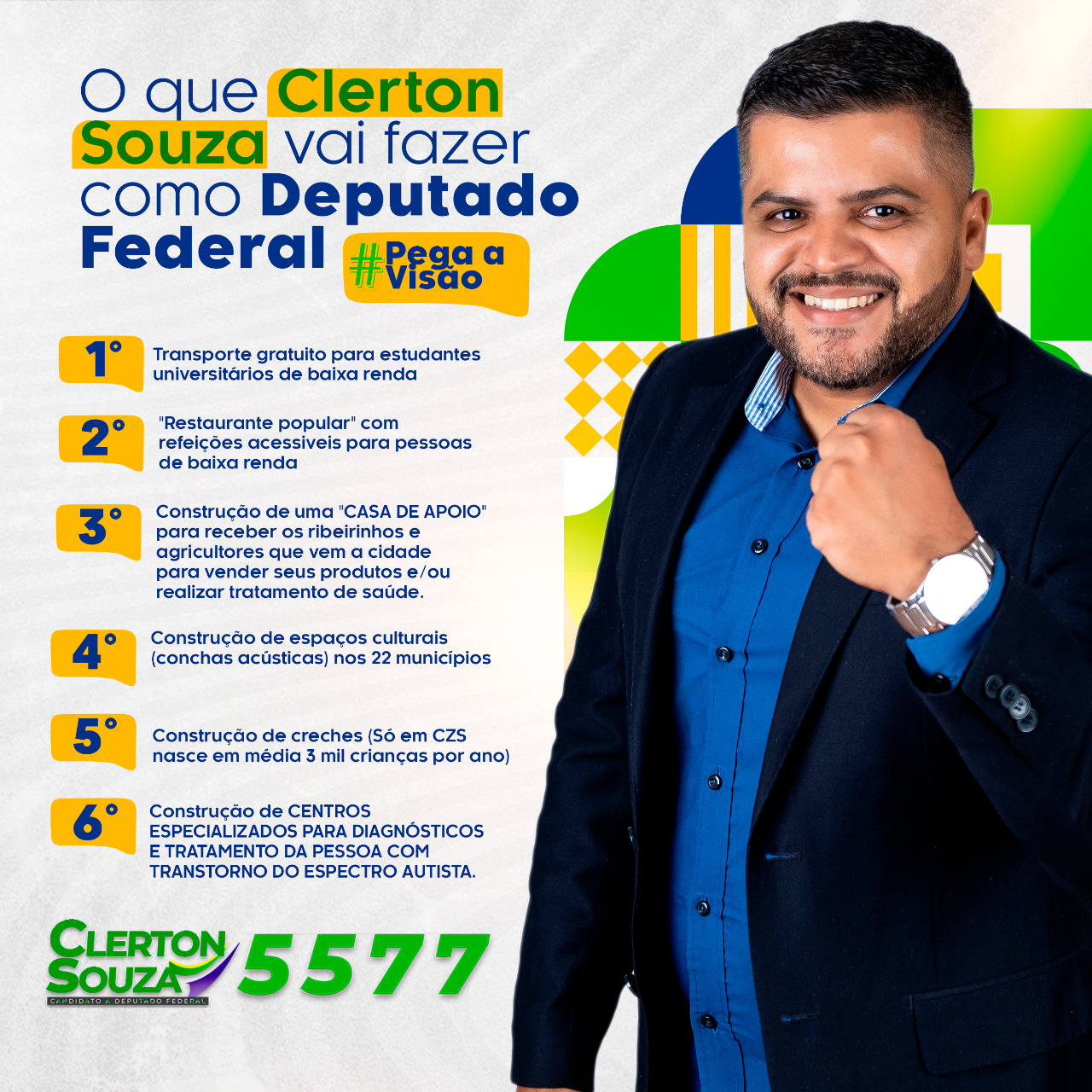 Clerton tem a simpatia e o carisma de muitos eleitores que pensavam até mesmo em se abster ou votar em branco nas eleições de 2022, devido as recentes frustações com ‘a politicagem’. Com um conteúdo recheado de propostas, o vereador mais proativo do Juruá e candidato a Deputado Federal vem arrancando apoio de várias partidas do estado; essas manifestações vêm sendo feitas através das redes sociais e tem gerado um fato curioso e criado uma expectativa positiva nesta reta final de campanha.