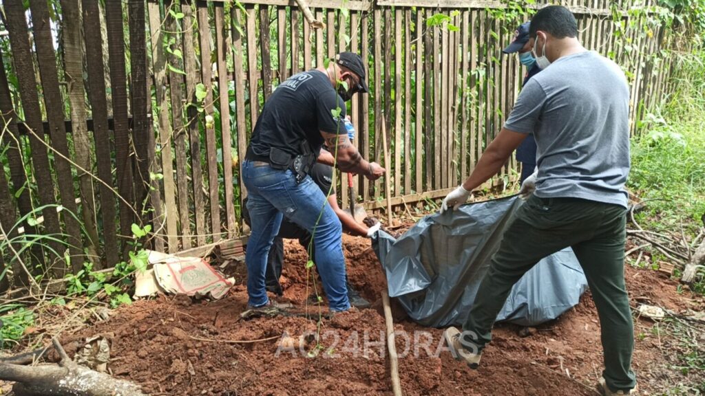 Após uma denúncia anônima, o corpo de um homem ainda não identificado pela polícia foi encontrado esquartejado e queimado juntamente com um colchão dentro de uma cova de profundidade de aproximadamente um metro em uma área de mata situada na rua Gerson Pereira, no bairro Democracia, no município de Senador Guiomard, distante 27 km de Rio Branco.