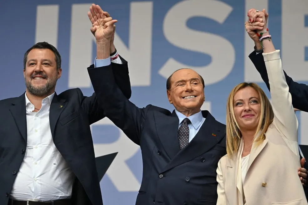 A aliança de direita dirigida pelo partido de Meloni teve, no total, mais de 43% dos votos, além da maioria na Câmara dos Deputados e no Senado. A coalizão é formada pelos aliados de extrema direita do partido Liga, de Matteo Salvini, e Força Itália, do conservador Silvio Berlusconi, que tiveram, respectivamente, 9% e 8% dos votos.