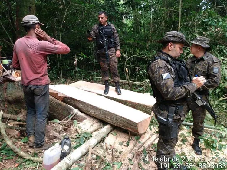 Polícia Ambiental apreende madeira ilegal, armas e maquinários utilizados para desmate