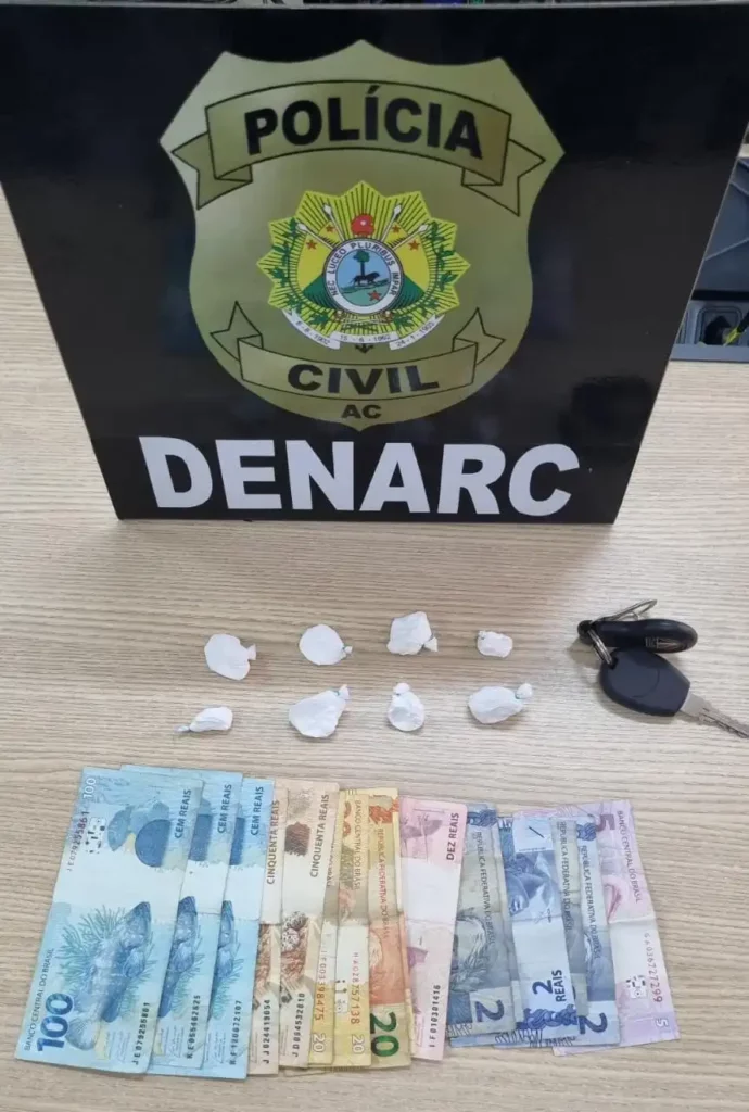 Em posse do investigado, os agentes encontraram 8 trouxinhas de cocaína e R$ 530,00 reais e um veículo modelo Palio, marca Fiat.