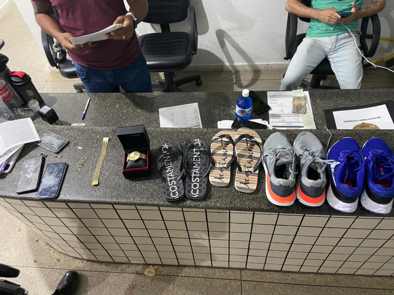 De acordo com o tenente Robson Belo, os policiais conseguiram alcançar o veículo e recuperaram R$ 2mil em espécie, brincos, pingentes, celulares e outros objetos que haviam sido roubados.