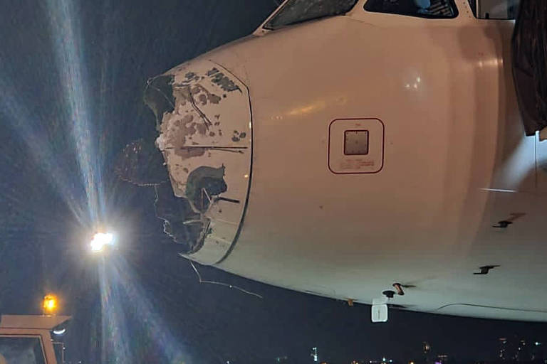 A companhia aérea, por meio da assessoria, confirmou que a aeronave teve o bico destruído, conforme mostram as imagens, e também avarias no para-brisa.