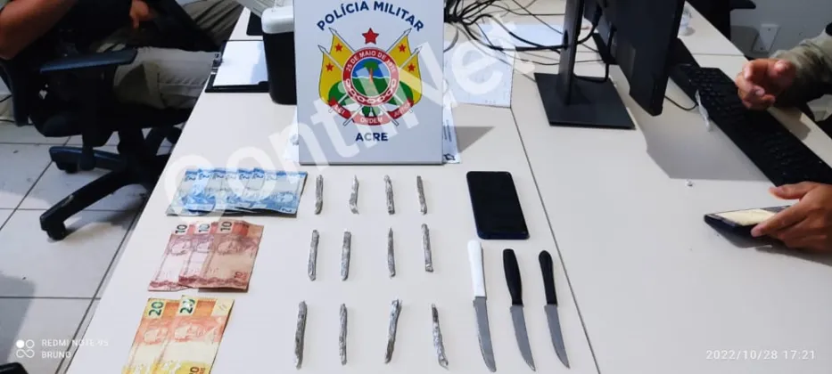 Paulo Vitor Silva Januária, 20 anos, Moisés da Costa Vidal, 21, Bruna Silva e Silva, 24, e Laiza Thalia Silva do Nascimento, 19, foram presos acusados de tráfico de drogas, na noite desta sexta-feira (29), na rua Maria das Dores, no bairro Nova Esperança, em Rio Branco.