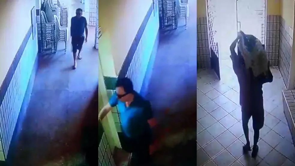 Nas imagens desta quarta, é possível ver quando o diretor sai da escola sozinho carregando um saco com os produtos. Já em outro vídeo, de agosto deste ano, ele é visto com outro homem. A Polícia não passou informações sobre este segundo homem.