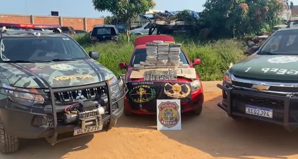Um homem foi preso nesta segunda-feira (29) com mais de 40 quilos de droga escondidos no bagageiro de um carro. O flagrante foi feito durante uma ação integrada entre o Grupamento Especial de Fronteira (Gefron), a Polícia Federal e policiais militares do 5º batalhão em Brasiléia.