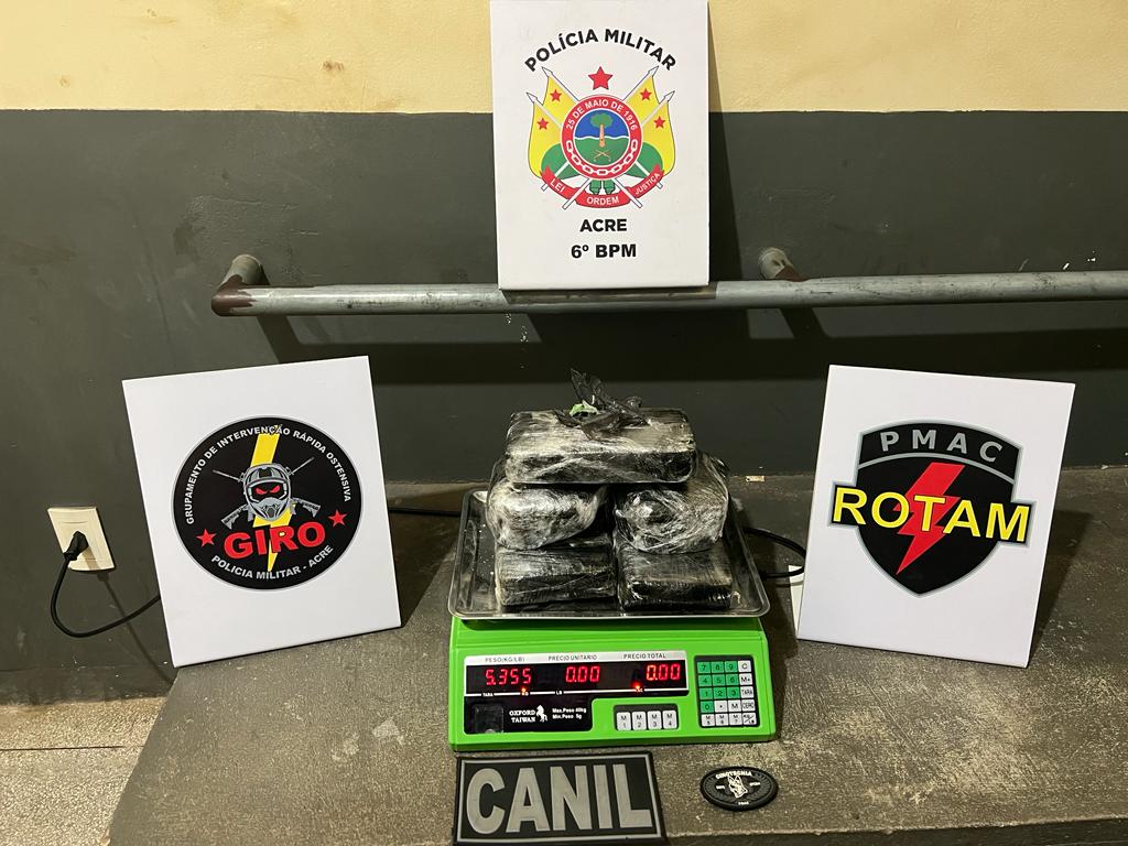 Durante uma fiscalização com cão farejador em um ônibus intermunicipal que realizava o trajeto Cruzeiro do Sul/Rio Branco, a cadela Tina indicou algo no compartimento de carga. Após a identificação da proprietária, os militares realizaram uma vistoria na mala, onde foi encontrada pouco mais de 5kg de barras de uma substância com aspecto de cocaína.