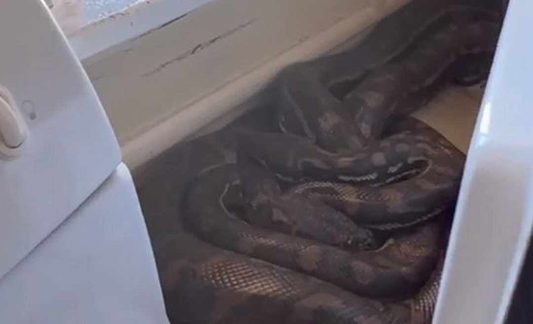Uma australiana encontrou duas cobras da espécie píton atrás do micro-ondas da cozinha de casa. Morada de Queensland, na costa leste do país, ela percebeu uma movimentação estranha próxima ao eletrodoméstico e se deparou com os animais grudados ao objeto.