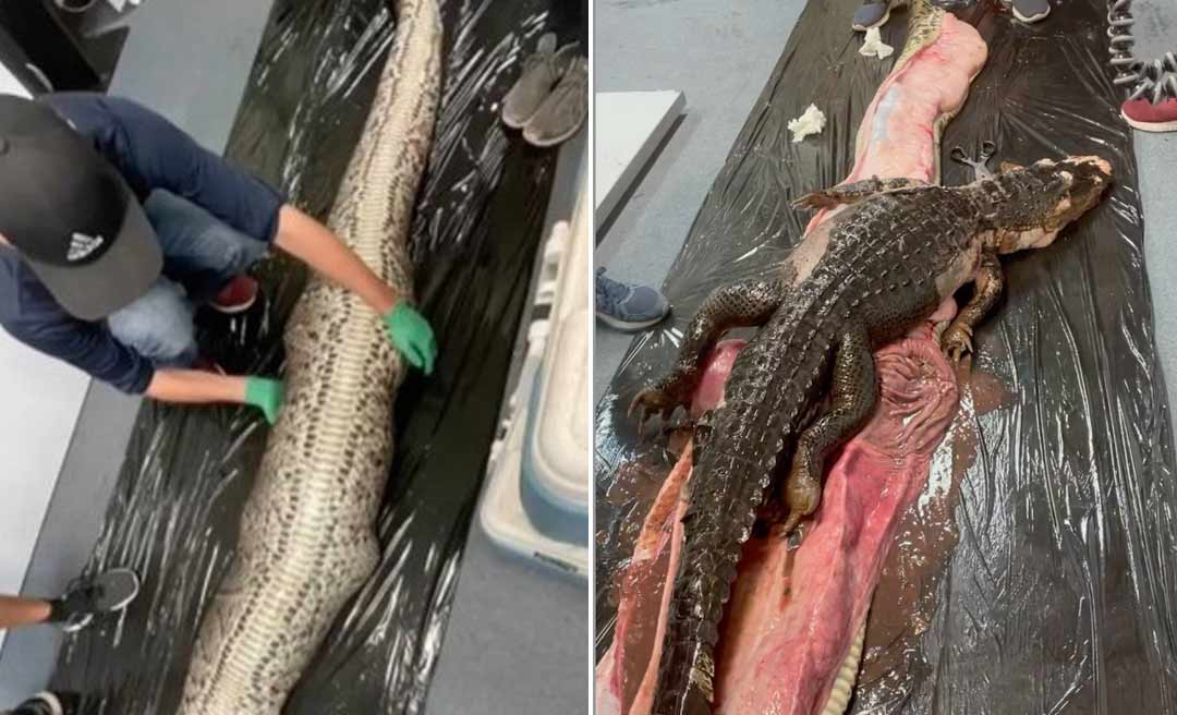 Uma equipe de cientistas tirou um aligátor (jacaré americano) inteiro do estômago de uma píton de 5,5 metros de comprimento na Flórida (EUA).