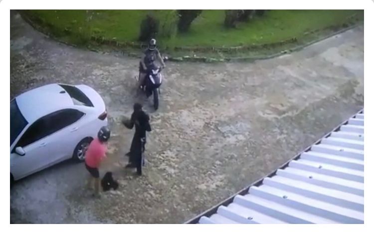 A ação foi registrada por câmeras de segurança do local. Nas imagens é possível observar o momento em que o assaltante chega correndo, se aproxima de uma das vítimas e toma um objeto. Em seguida se aproxima de condutor de uma moto de quem também leva objetos pessoais. De posse dos bens o homem foge correndo.