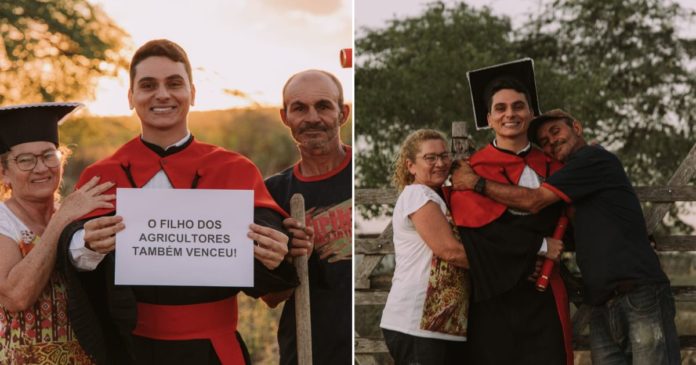 Filho de agricultores conclui mestrado e faz ensaio fotográfico com os pais no sítio