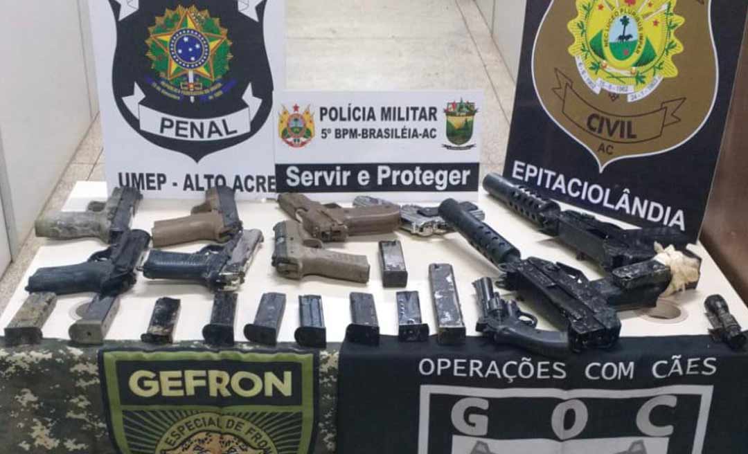 A ação é resultado da integração entre o Grupo Especial da Fronteira (Gefron), Polícia Civil de Epitaciolândia, monitoramento da Polícia Penal, o Batalhão de Operações Especiais (Bope) e o Grupamento de Intervenção Rápida Ostensiva da Polícia Militar (Giro/AC), que além de apreenderem um verdadeiro arsenal de guerra, prenderam 6 pessoas, que foram encaminhadas à Delegacia de Polícia Civil de Epitaciolândia.