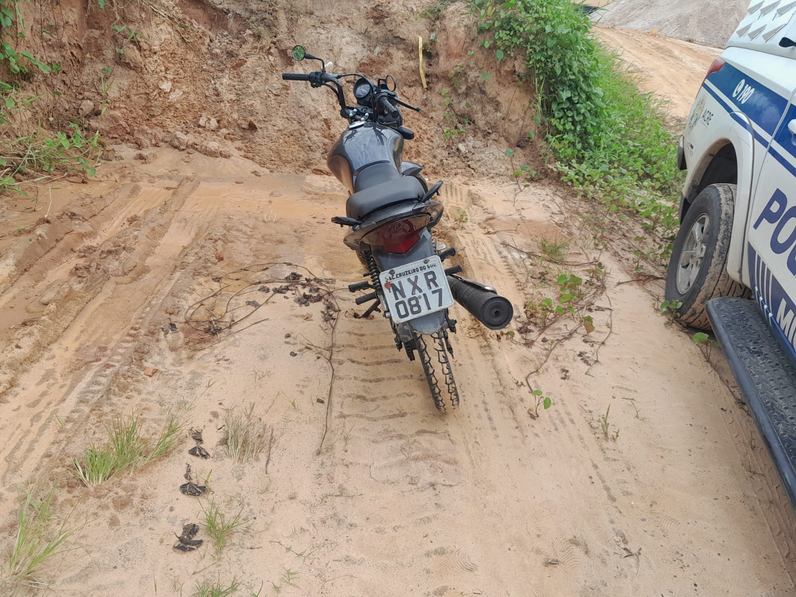A moto teria sido roubada na noite desta quarta-feira (28). Ao chegar no local, a guarnição se deparou com a chave ainda na ignição.