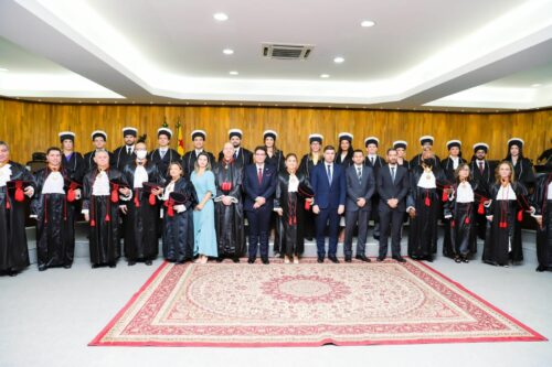 Ao lado do governador Gladson Cameli e da presidente do Tribunal de Justiça do Acre, Waldirene Cordeiro, o presidente da Assembléia Legislativa, Nicolau Júnior, prestigiou na manhã desta quinta-feira (8), a posse dos 15 novos juízes que passam a compor a magistratura acreana.