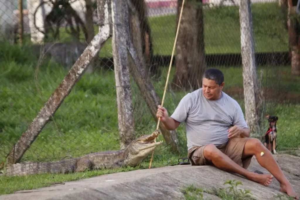 “As primeiras vezes que vi, anos atrás, o Tião era apenas um filhote e estava sempre sendo alimentado pelo seu amigo pescador, o Sr Aldecino, que pesca os peixes do lago e alimenta o amigo jacaré, que está sempre ao seu lado esperando o agrado”, disse Rosi em uma publicação.