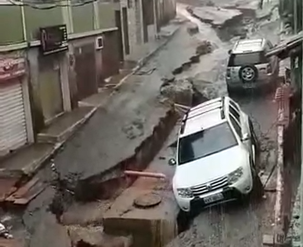 VÍDEO: Temporal abre cratera e destroi rua de Macaé, no norte do Rio de Janeiro