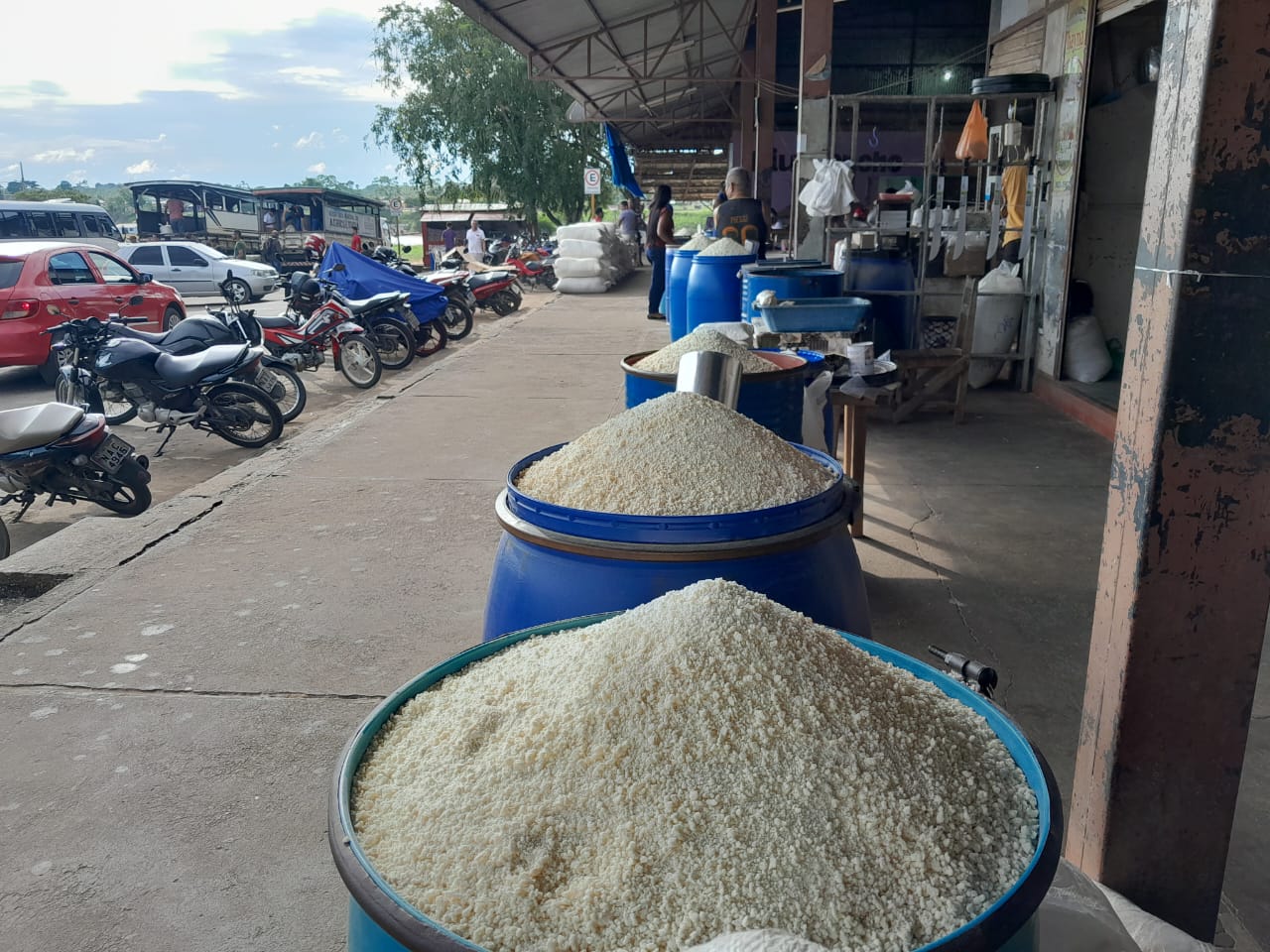 A saca de farinha está sendo comprada pelos vendedores por R$ 200,00 do produtor e repassada a R$ 220,00 para o consumidor. O paneiro está a R$ 110,00 e o meio paneiro ainda é encontrado a R$ 55,00.