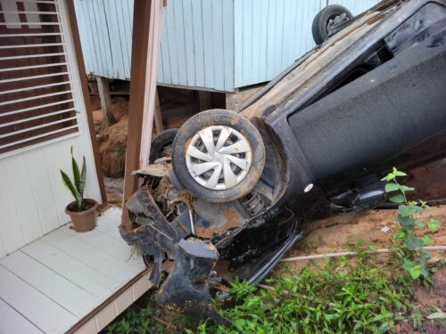 O automóvel não foi retirado do local no local devido a iminência de causar danos à residência e por não estar atrapalhando o trânsito da via.