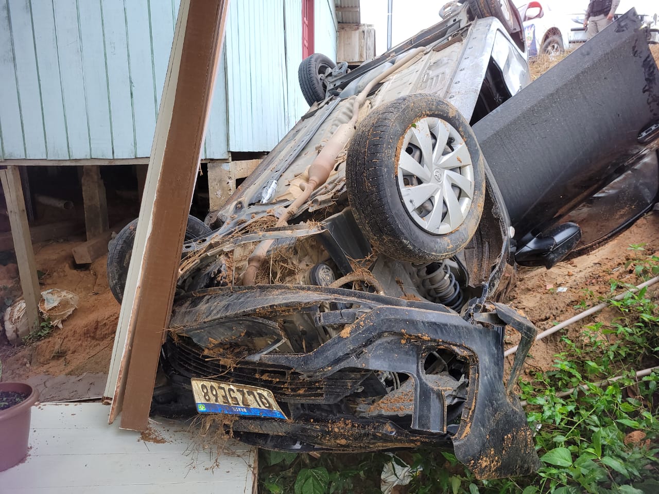 O automóvel não foi retirado do local no local devido a iminência de causar danos à residência e por não estar atrapalhando o trânsito da via.