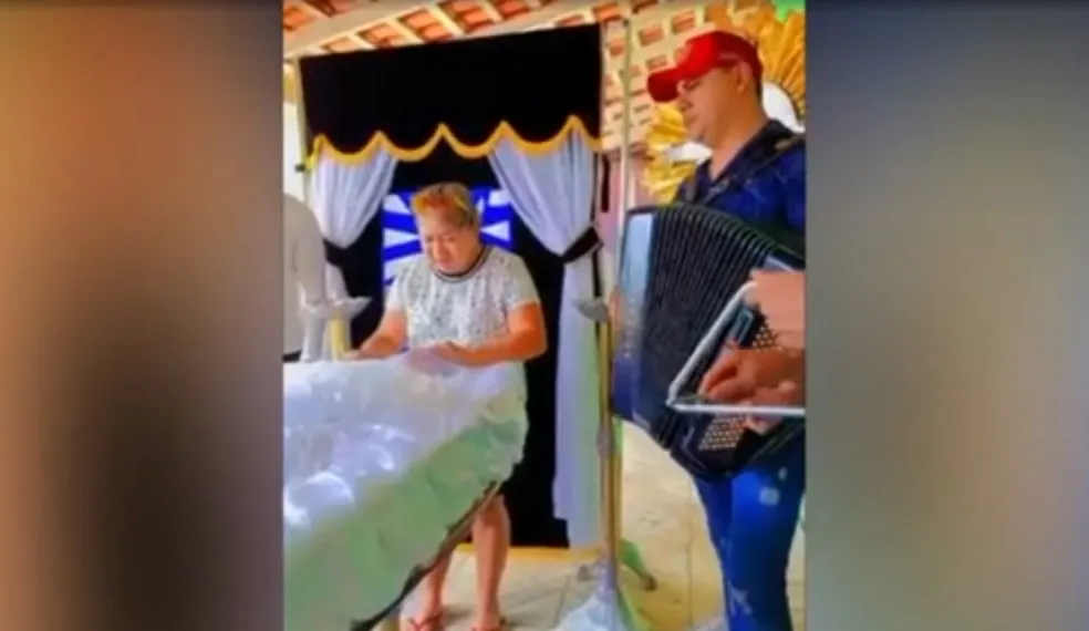 Um velório inusitado realizado nesta terça-feira (10), no Pará, viralizou nas redes sociais. O momento de despedida de José Vieira, 83 anos, foi palco de um show de forró pé de serra. Enquanto o idoso é velado por amigos e familiares, um sanfoneiro e banda tocam o repertório marcado pelo ritmo nordestino.