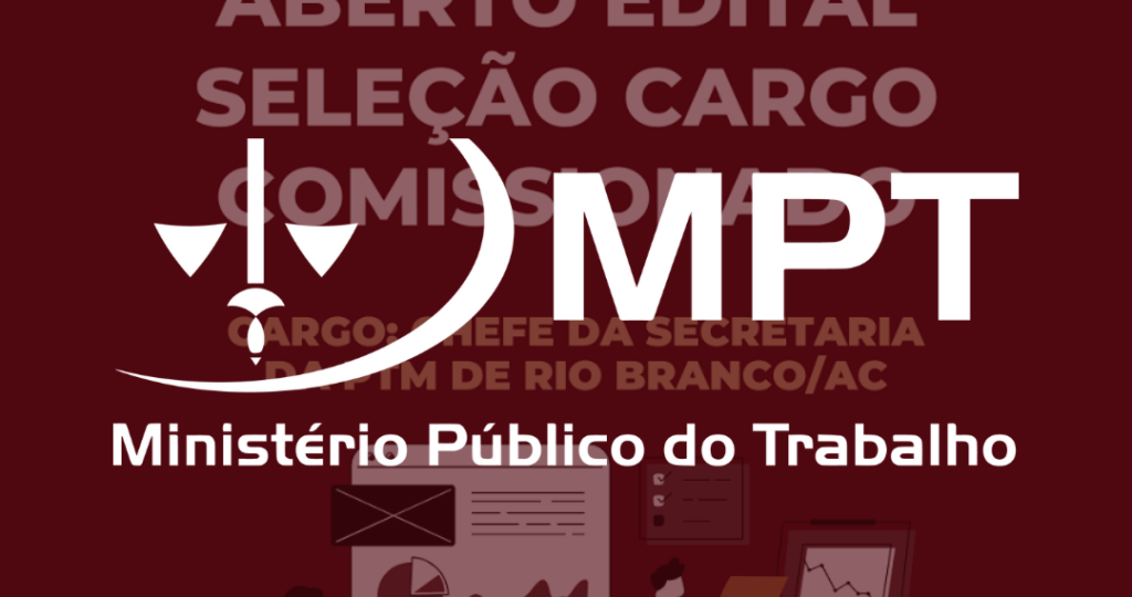 O Ministério Público do Trabalho (MPT) abriu processo seletivo simplificado para o preenchimento de uma (01) vaga para cargo em comissão (CC-1) de Chefe de Secretaria da Procuradoria do Trabalho no Município de Rio Branco, no Acre. O interessado deve ter formação acadêmica em Administração ou Direito para exercer as atribuições pertinentes ao cargo.