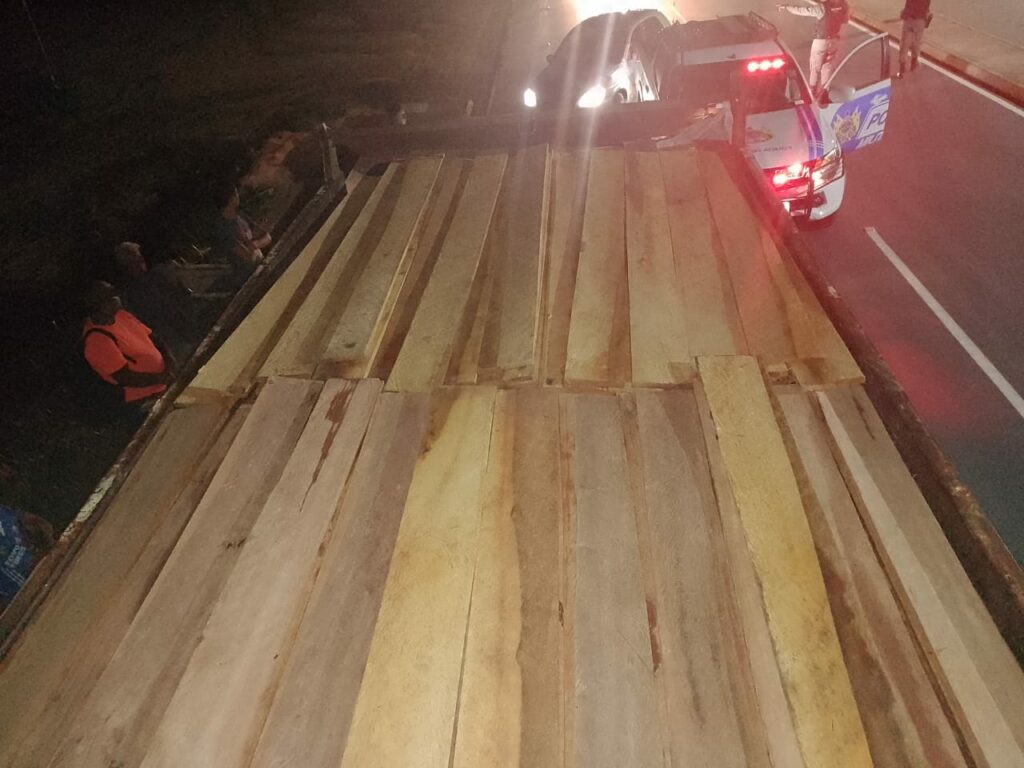 A guarnição de serviço da Base Rodoviária da Polícia Militar realizava um patrulhamento pela AC-405, na noite deste domingo (08), quando abordou um caminhão carregado de madeira tipo tábuas, peças e barrotes, sem o DOF (Documento de Origem Florestal). Eram aproximadamente 10m³ das espécies jacareúba, ucuúba, sapucaia, entre outras.