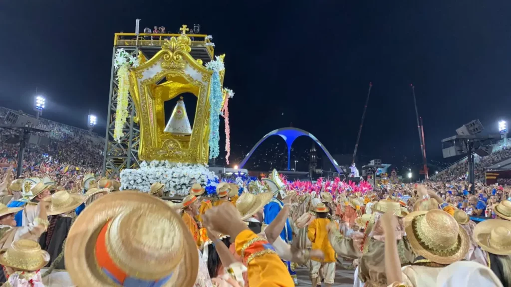 A Vila Isabel é a terceira escola a desfilar na noite desta segunda-feira, 20. Representando o Círio de Nazaré, festa religiosa bastante conhecida no Pará, a escola trouxe a imagem do Círio carregada por pessoas com corda em seu entorno. Em outras ocasiões em que a festividade foi representada na Sapucaí, as agremiações costumavam levar uma imagem estilizada. Desta vez, a Vila ousou e quebrou um acordo que há informalmente com a Igreja Católica de não ter imagens de santos em seus desfiles.