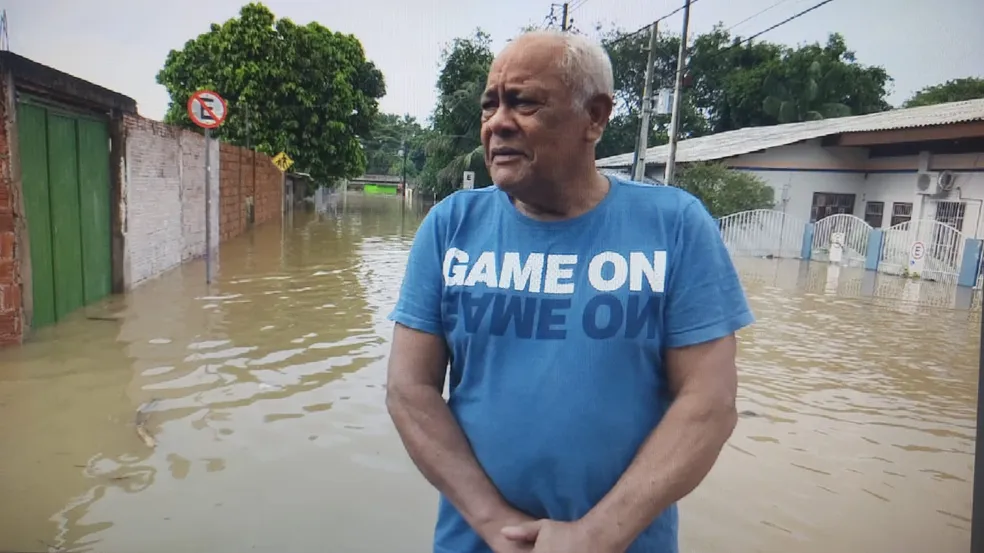 Morador do bairro Raimundo Melo, José de Oliveira da Silva, teve a casa alagada em Rio Branco — Foto: Eldérico Silva/Rede Amazônica