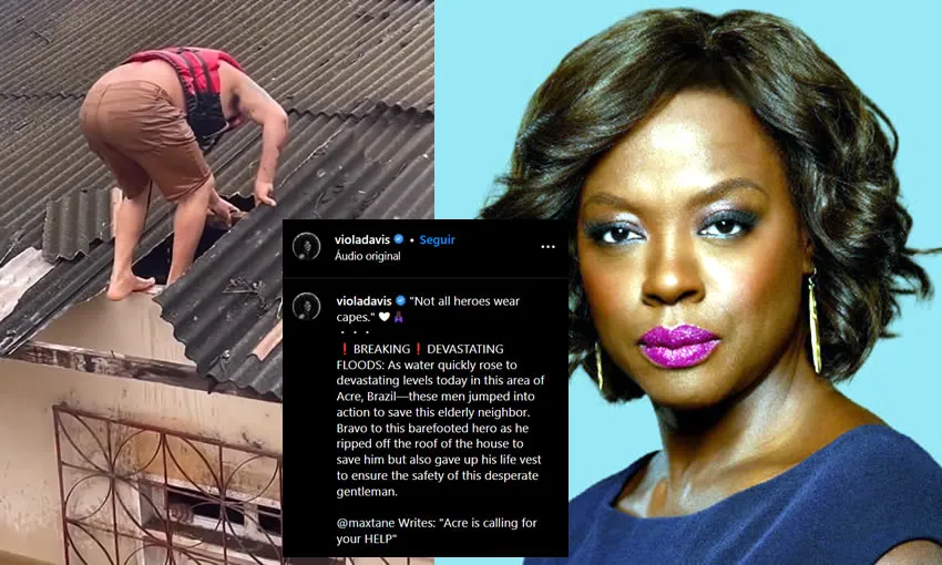 A atriz americana Viola Davis, vencedora de um Oscar e de todos os principais prêmios da indústria do entretenimento, compartilhou em suas redes sociais, o vídeo do idoso que foi resgatado pelo telhado de sua casa na Avenida Getúlio Vargas.