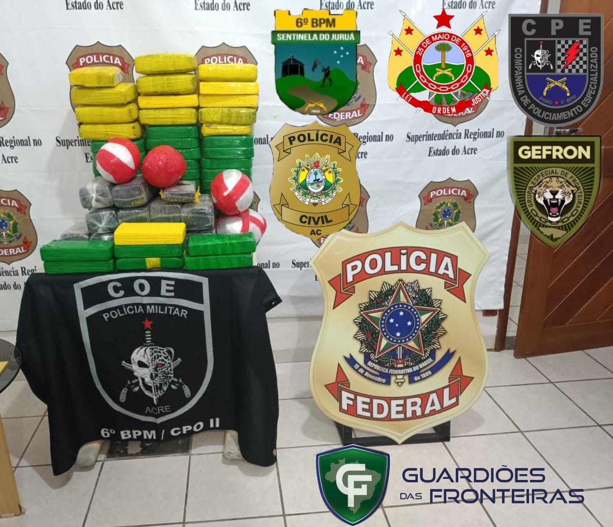 As Polícias Federal e Militar prenderam dois homens que estavam de posse de 70kg de cocaína e maconha. A prisão aconteceu nesta terça-feira (28) no Rio Juruá, próximo a Rodrigues Alves.