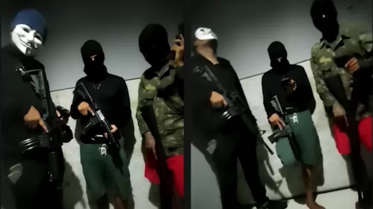Um dos homens mascarados diz: “A gente não quer guerra, a não ser com o governo. Nossa guerra tá declarada com o Estado”. Na sequência, outro cita agentes penitenciários e policiais — chamados por ele de “opressores”. “A gente não vai parar mais, não, enquanto o direito pros nossos irmãos que tá lá dentro não for aceito.”