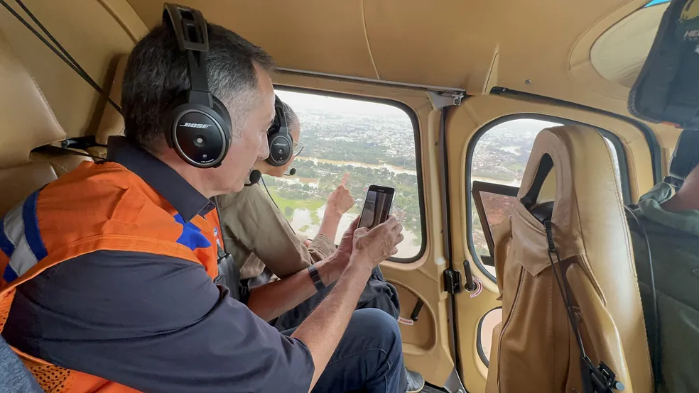 Do aeroporto, a comitiva seguiu em sobrevoo pela cidade de Rio Branco e desceu em bairros atingidos pela cheia do Rio Acre e transbordamento dos igarapés.