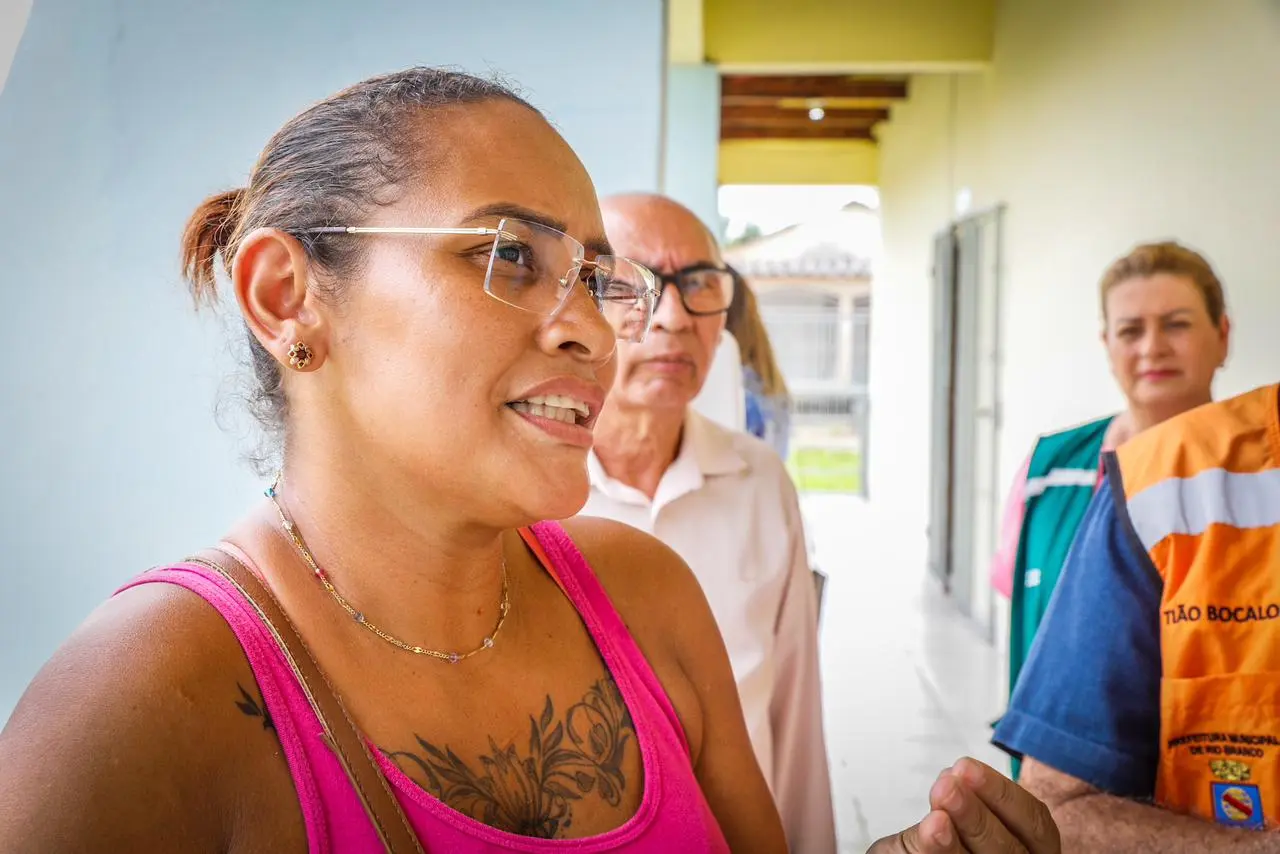 A moradora do bairro Conquista, Janaira Santos, 27 anos, mãe de três filhos que teve sua residência levada pelas águas do igarapé São Francisco na última semana, esteve no Colégio Álvaro Vieira da Rocha, reclamando que criminosos estão usando sua imagem para pedir dinheiro nas redes sociais.