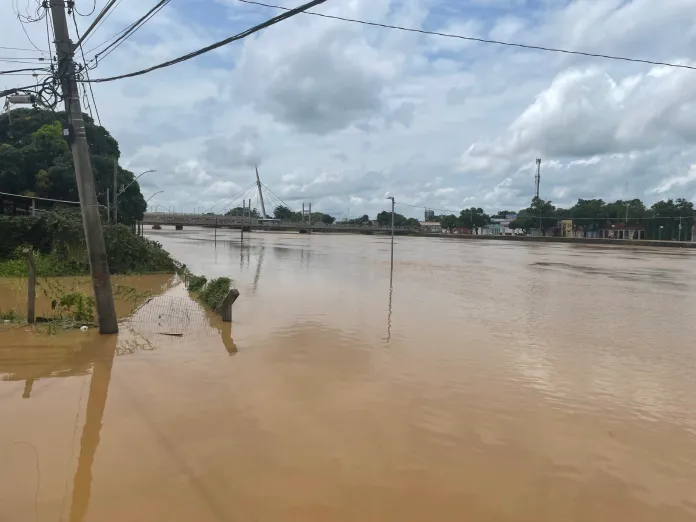 O afluente registrou a marca de 16,74 m, às 6h. Na medição de 18h do domingo (26), havia registrado 16,57 m. A atual medição já está a mais de dois metros da cota de transbordamento, que é 14 m.