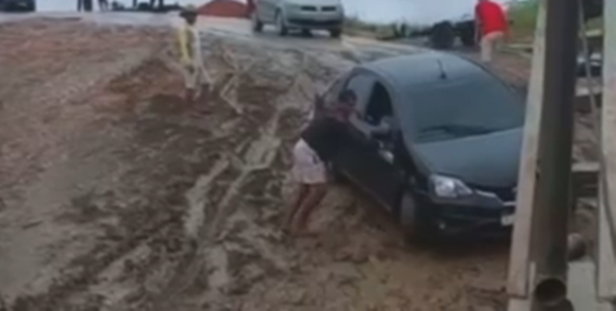 Nas imagens enviadas Ao Juruá em Tempo, é possível ver um homem fora do carro tentando direcionar o veículo que estava deslizando na lama. O motorista consegue manter o controle sobre a direção e embarcar no transporte fluvial, mas, ao que parece, acaba batendo a parte da frente do carro.
