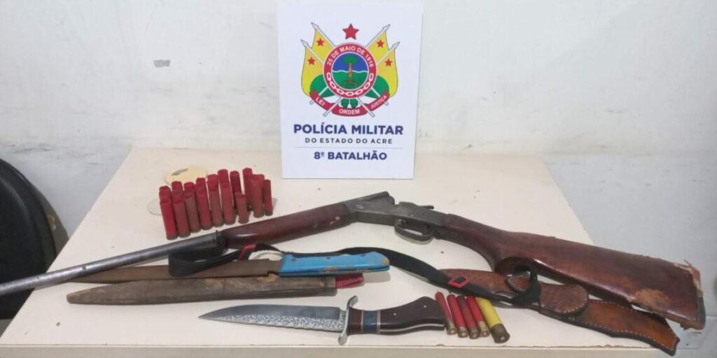 Acionados para atender uma ocorrência de ameaça no Ramal 25, Zona Rural de Sena Madureira, os militares conseguiram apreender no local uma espingarda com munições. O adolescente, autor das ameaças, também foi apreendido no local.