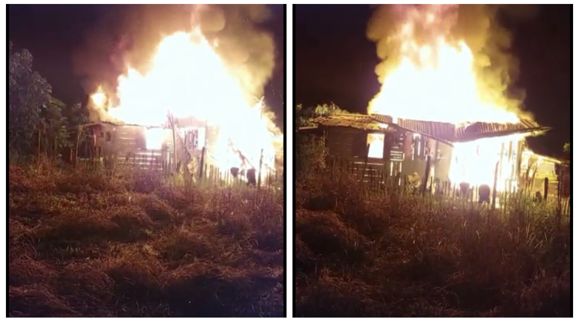 Uma casa ficou totalmente destruída após pegar fogo no início da noite deste domingo (09), na estrada do mutirão no município de Guajará – Amazonas.
