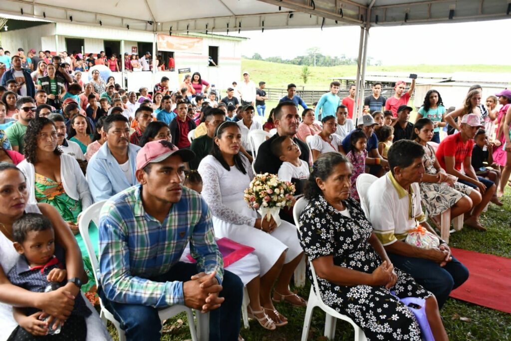 Era cedo, a neblina não tinha dissipado na paisagem contornada pelas águas barrentas do Rio Muru, na quinta-feira, 20, quando Francisco Gomes Ferreira, de 58 anos e Maria de Jesus, 39 anos, subiam o barranco para chegar até a tenda branca levantada e decorada na frente da Escola Municipal Coronel José Marques de Albuquerque I, no seringal Paraíso, em Tarauacá. Eles estavam ali para oficializarem a união de 18 anos no Casamento Coletivo do Projeto Cidadão.