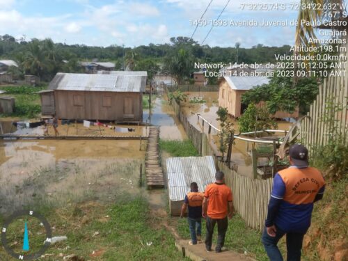 Na última quarta-feira (12), a equipe de Defesa Civil acompanhado do secretário de produção visitou as áreas afetadas pela cheias do rio Juruá.